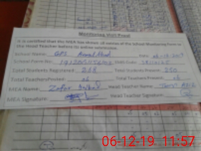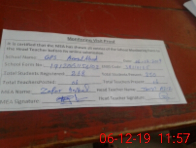 | Attendance Register | Head Teacher | MEA with School | Visit Proof |