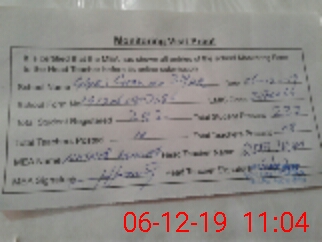 | Monitoring Date: 06-12-2019 | Start Time: 06-12-2019 09:05 AM | End Time: 06-12-2019 11:04 AM | Name of MEA: NA**** AH**** BN**** | |