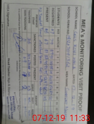 | Monitoring Date: 07-12-2019 | Start Time: 07-12-2019 09:34 AM | End Time: 07-12-2019 11:33 AM | Name of MEA: Sh**** Na**** | |