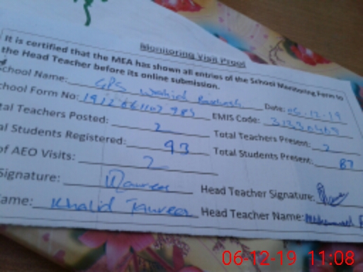 | EMIS Code: 31330469 | Name of School: GPS WAHID BUX | |||