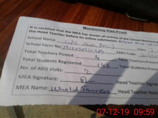 | EMIS Code: 31330484 | Name of School: GPS SHAH BAIG | |||