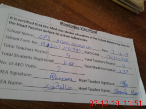 | EMIS Code: 31330468 | Name of School: GPS BASTI ALLAH BACHAYA | |||