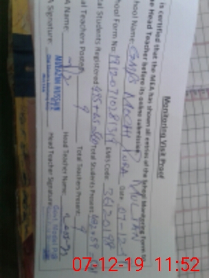 | Certified that this School was Inspected by the Undersigned MEA/DMO Today and the Information Stated Above is as Per Record. | |||||