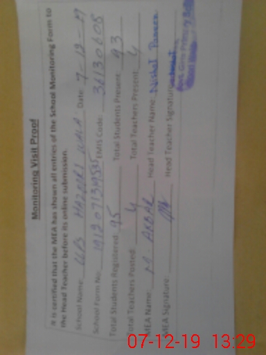 | Attendance Register | Head Teacher | MEA with School | Visit Proof |
