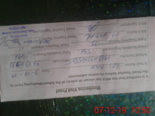 | Monitoring Date: 07-12-2019 | Start Time: 07-12-2019 10:29 AM | End Time: 07-12-2019 10:52 AM | Name of MEA: MU**** AK**** KH**** | |