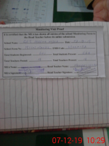| Certified that this School was Inspected by the Undersigned MEA/DMO Today and the Information Stated Above is as Per Record. | |||||