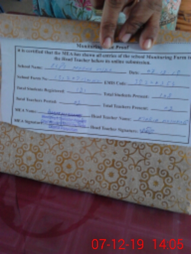 | Certified that this School was Inspected by the Undersigned MEA/DMO Today and the Information Stated Above is as Per Record. | |||||