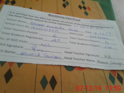 | Attendance Register | Head Teacher | MEA with School | Visit Proof |