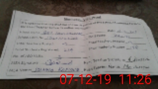 | Monitoring Date: 07-12-2019 | Start Time: 07-12-2019 10:39 AM | End Time: 07-12-2019 11:33 AM | Name of MEA: Sh**** Ra**** | |