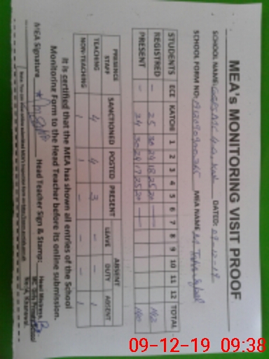 | Attendance Register | Head Teacher | MEA with School | Visit Proof |