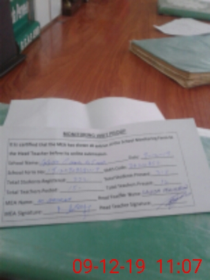 | Attendance Register | Head Teacher | MEA with School | Visit Proof |