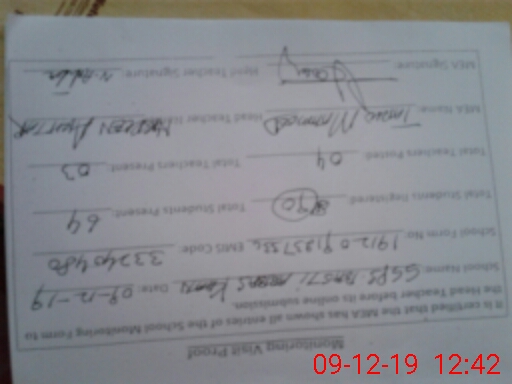 | Attendance Register | Head Teacher | MEA with School | Visit Proof |