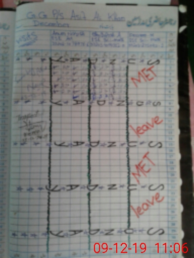 | CNIC | Full Name | Designation | R/C | Absence During Last Calender Month |