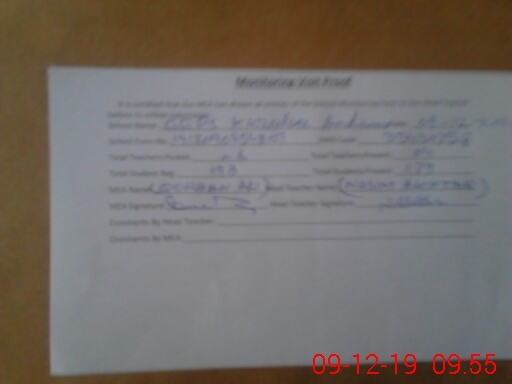 | Attendance Register | Head Teacher | MEA with School | Visit Proof |