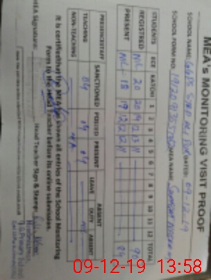 | Attendance Register | Head Teacher | MEA with School | Visit Proof |
