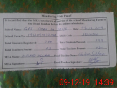 | Attendance Register | Head Teacher | MEA with School | Visit Proof |