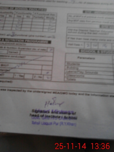 | Certified that this School was Inspected by the Undersigned MEA/DMO Today and the Information Stated Above is as Per Record. | |||||