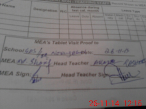 | Attendance Register | Head Teacher | MEA with School | Visit Proof |