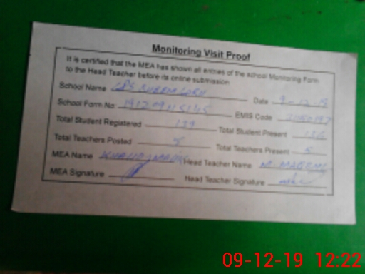 | Attendance Register | Head Teacher | MEA with School | Visit Proof |