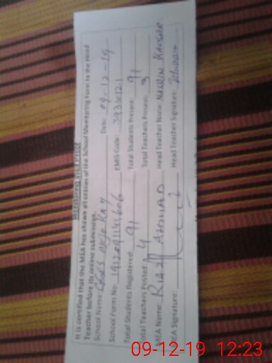 | Attendance Register | Head Teacher | MEA with School | Visit Proof |