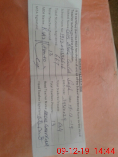 | Certified that this School was Inspected by the Undersigned MEA/DMO Today and the Information Stated Above is as Per Record. | |||||
