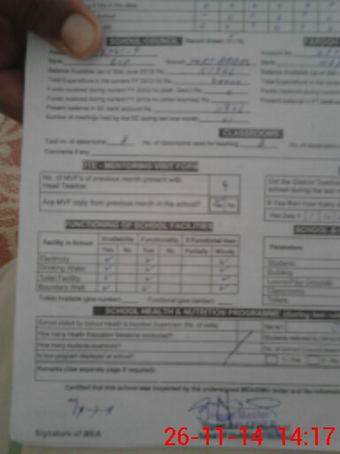| Attendance Register | Head Teacher | MEA with School | Visit Proof |