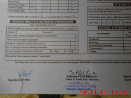 | Certified that this School was Inspected by the Undersigned MEA/DMO Today and the Information Stated Above is as Per Record. | |||||
