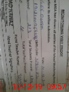 | Certified that this School was Inspected by the Undersigned MEA/DMO Today and the Information Stated Above is as Per Record. | |||||