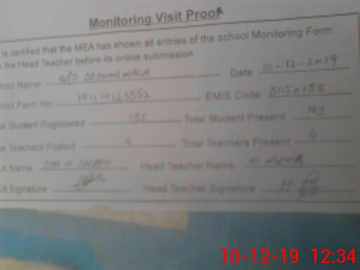 | EMIS Code: 31150158 | Name of School: GPS SETHANA WALI | |||