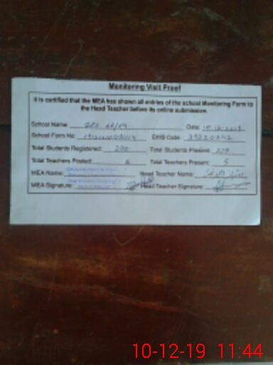 | Attendance Register | Head Teacher | MEA with School | Visit Proof |