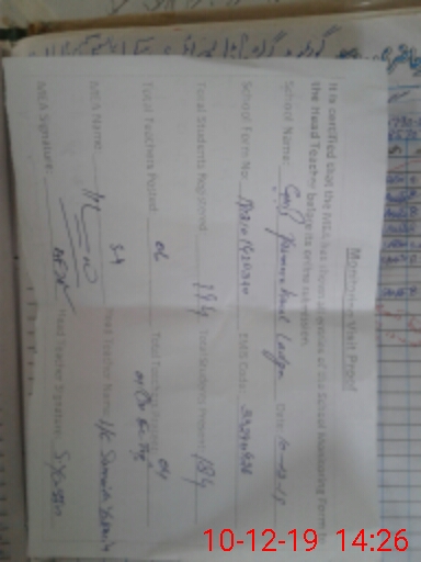 | Certified that this School was Inspected by the Undersigned MEA/DMO Today and the Information Stated Above is as Per Record. | |||||