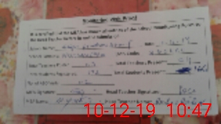 | Monitoring Date: 10-12-2019 | Start Time: 10-12-2019 10:21 AM | End Time: 10-12-2019 10:48 AM | Name of MEA: Mu**** Yo**** | |