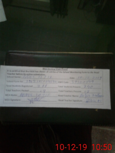 | Certified that this School was Inspected by the Undersigned MEA/DMO Today and the Information Stated Above is as Per Record. | |||||