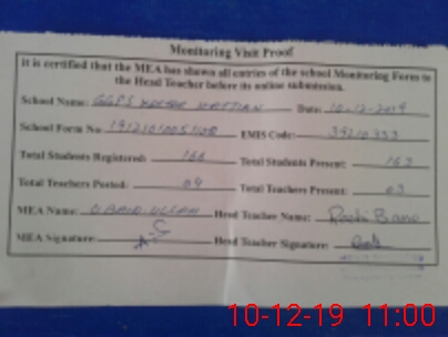 | Attendance Register | Head Teacher | MEA with School | Visit Proof |