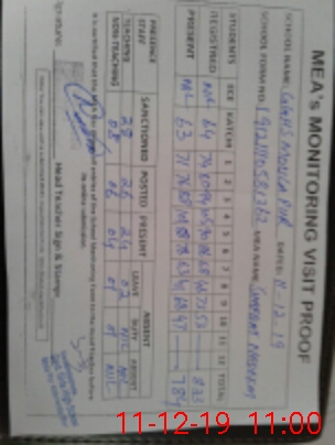 | Monitoring Date: 11-12-2019 | Start Time: 11-12-2019 09:46 AM | End Time: 11-12-2019 11:07 AM | Name of MEA: Sh**** Na**** | |