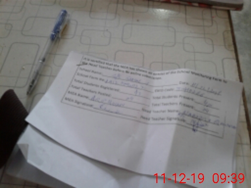 | Attendance Register | Head Teacher | MEA with School | Visit Proof |