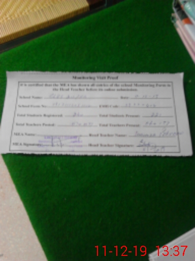 | Attendance Register | Head Teacher | MEA with School | Visit Proof |