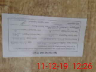 | Monitoring Date: 11-12-2019 | Start Time: 11-12-2019 12:01 PM | End Time: 11-12-2019 12:32 PM | Name of MEA: Za**** BN**** | |