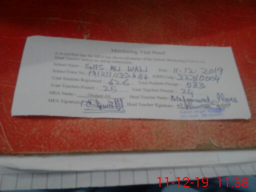 | EMIS Code: 32310004 | Name of School: GHS ALI WALI | |||