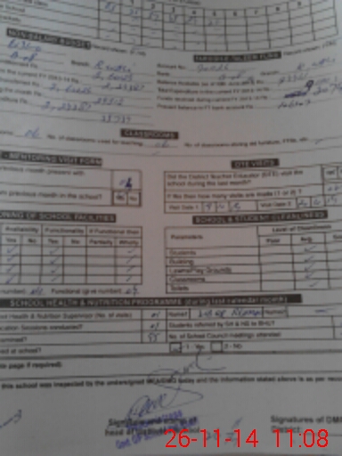 | School Visited by School Health & Nutrition Supervisor (No. of Visits) | 1 | Name1: | ZIA UR REHMAN | Name2: | OO |