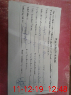 | Monitoring Date: 11-12-2019 | Start Time: 11-12-2019 11:21 AM | End Time: 11-12-2019 12:49 PM | Name of MEA: MU**** SH**** MU**** | |