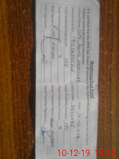 | Certified that this School was Inspected by the Undersigned MEA/DMO Today and the Information Stated Above is as Per Record. | |||||