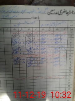 | CNIC | Full Name | Designation | R/C | Absence During Last Calender Month |