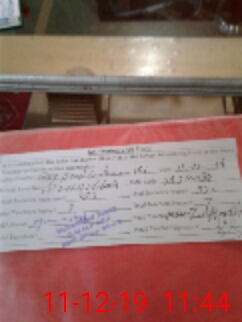 | Monitoring Date: 11-12-2019 | Start Time: 11-12-2019 11:26 AM | End Time: 11-12-2019 11:46 AM | Name of MEA: MU**** YA**** (R**** | |