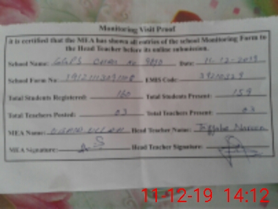 | Attendance Register | Head Teacher | MEA with School | Visit Proof |