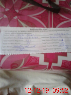 | Certified that this School was Inspected by the Undersigned MEA/DMO Today and the Information Stated Above is as Per Record. | |||||