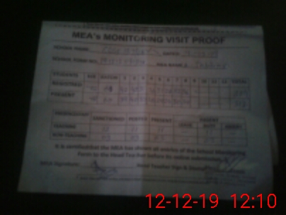 | Attendance Register | Head Teacher | MEA with School | Visit Proof |