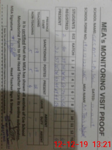 | Monitoring Date: 12-12-2019 | Start Time: 12-12-2019 12:21 PM | End Time: 12-12-2019 01:26 PM | Name of MEA: M.Ta**** Iq**** (S**** | |