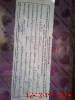 | Attendance Register | Head Teacher | MEA with School | Visit Proof |