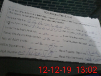| Certified that this School was Inspected by the Undersigned MEA/DMO Today and the Information Stated Above is as Per Record. | |||||